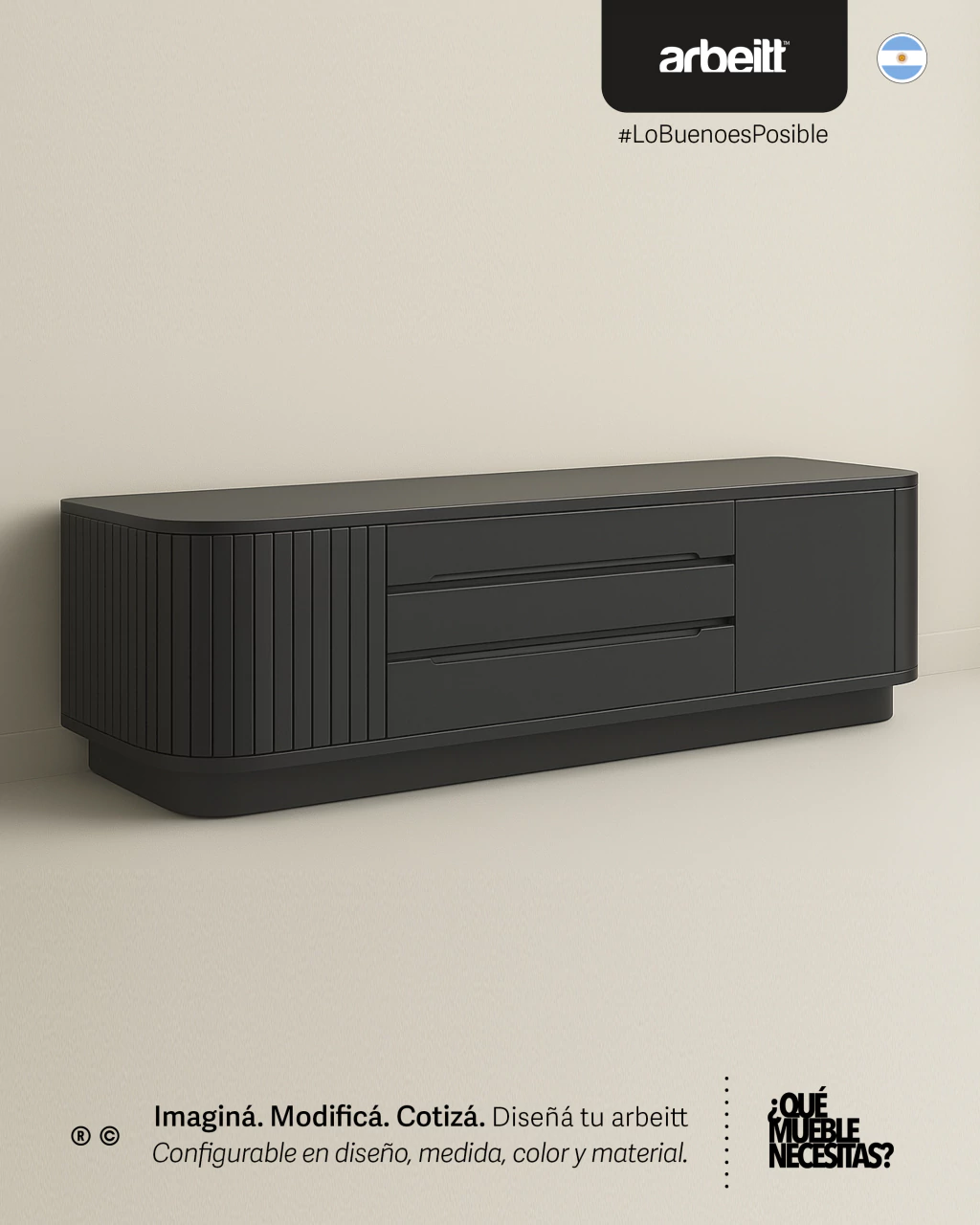 Una colección donde las curvas toman protagonismo y generan una estética suave con marcada presencia. Muebles que combinan materiales nobles y terminaciones de alta calidad, pensados para sumar armonía visual y fluidez a cada espacio con detalles que se destacan tanto a la vista como al tacto.